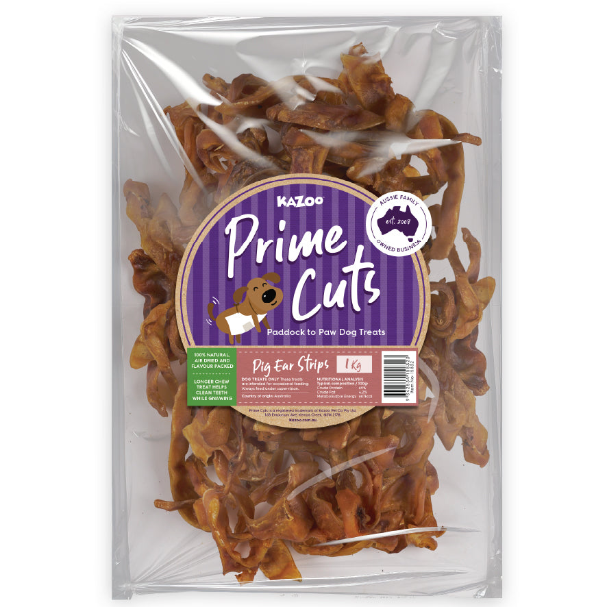 The Prime Cuts dog treat range uses meat that has been sourced from local Aussie farms. Just 100% protein, naturally air dried. They’re also free of additives, colours, fillers or nasties. Trust me, we can taste the difference. Naturally air-dried and flavour packed, these dog treats and come in a huge variety of flavours. Pig ears, cow ears, chicken breast, beef liver, puffy pig snouts, kangaroo liver and more!