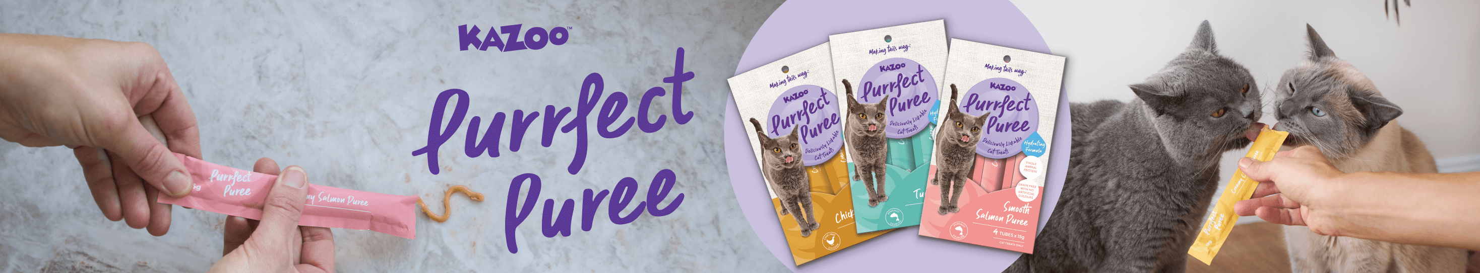 Purrfect Puree tubes are perfect for hand-feeding, topping meals, or sneaking in a little extra hydration. We even have customers freeze them as a cooling treat in summer.